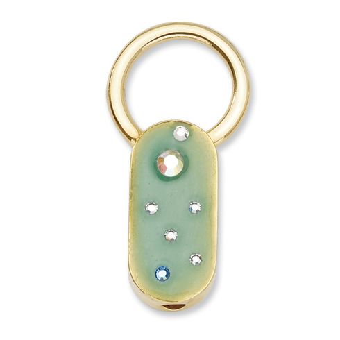 Non metal. Key Fob. Stone info: Green enamel, crysal, gold-tone. Part of the 1928 jewelry collection.