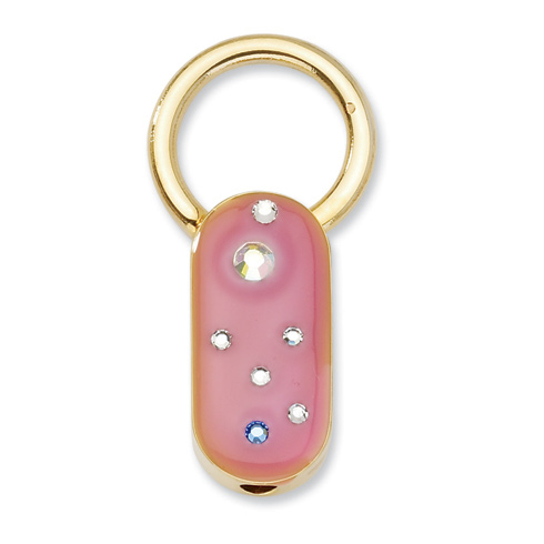Non metal. Key Fob. Stone info: Pink enamel, Crystal gold-tone. Part of the 1928 jewelry collection.