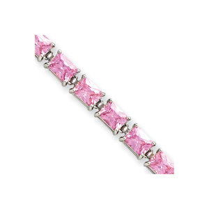 Emerald cut pink zirconias decorate this sterling silver bracelet. Length: 7 1/2in. Box catch with safety bar. Imported.