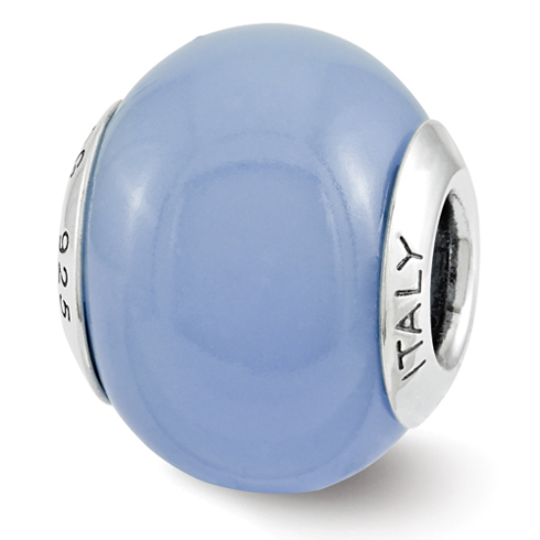 Blue glow in the dark glass bead is made of solid sterling silver with antique finish. This bead fits all major modular bracelet brands. Made in Italy.