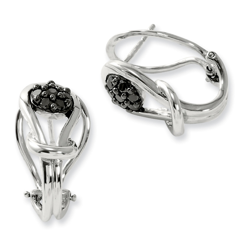 Black and white diamond love knot omega back earrings are made of polished sterling silver with rhodium plating. Diamond ct weight: 0.25. Weight: 3.52 grams. Part of the White Night jewelry collection. Each item includes a free White Night gift box.