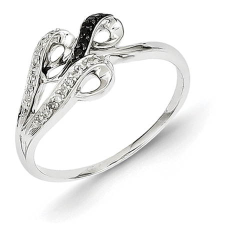 Polished sterling silver with rhodium plating. Available in whole finger sizes 6, 7 and 8 only. Diamond ct weight: 0.104. Weight: 2 grams. Part of the White Night jewelry collection. Each item includes a free White Night gift box.