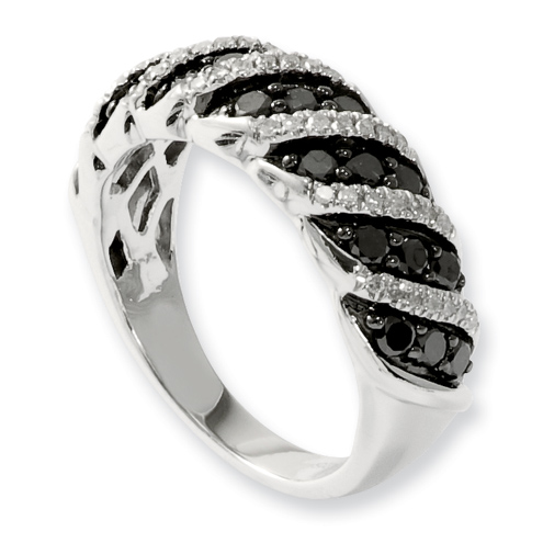 Black and white diamond ring is made of polished sterling silver with rhodium plating. Available in whole finger size 7 only. Diamond ct weight: 1.0. Weight: 4.59 grams. Part of the White Night jewelry collection. Each item includes a free White Night gift box.