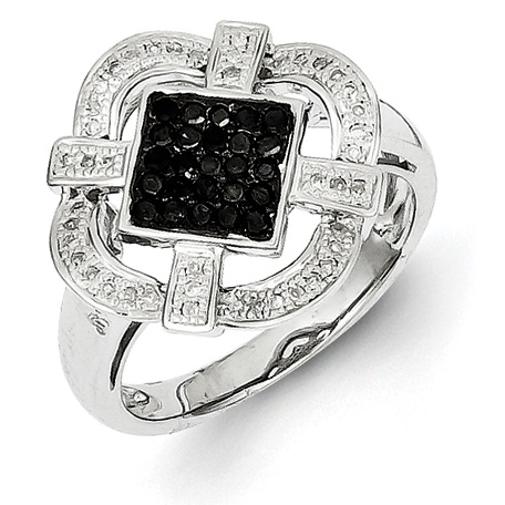 Polished sterling silver with rhodium plating. Available in whole finger sizes 6, 7 and 8 only. Diamond ct weight: 0.354. Weight: 3.75 grams. Part of the White Night jewelry collection. Each item includes a free White Night gift box.