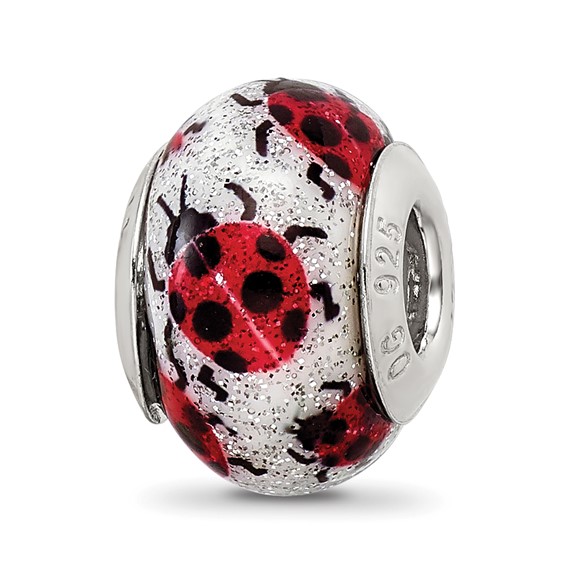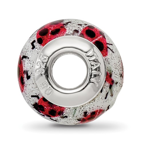 Ladybugs red and white bead is made of Italian Murano glass and solid sterling silver. This bead fits all major modular bracelet brands. Imported.