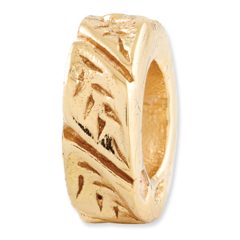 This leaf spacer bead is made of solid sterling silver with yellow gold plating. This bead fits all major modular bracelet brands. Bead size: 8.1mm x 2.7mm. Plating is two microns thick. Imported.
