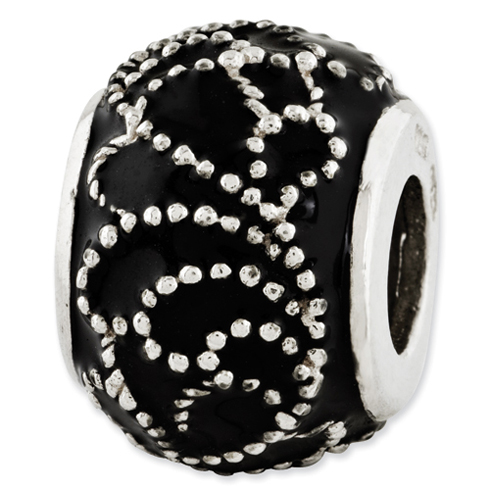 This black enameled bali bead with dotted swirls is made of antiqued solid sterling silver. This bead fits all major modular bracelet brands. Imported.