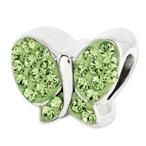 This green butterfly bead features green Swarovski elements. The bead is made of solid sterling silver. This bead fits all major modular bracelet brands. Imported.