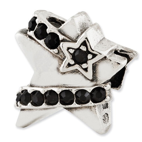This wrapped star bead features black Swarovski elements. The bead is made of antiqued solid sterling silver. This bead fits all major modular bracelet brands. Imported.