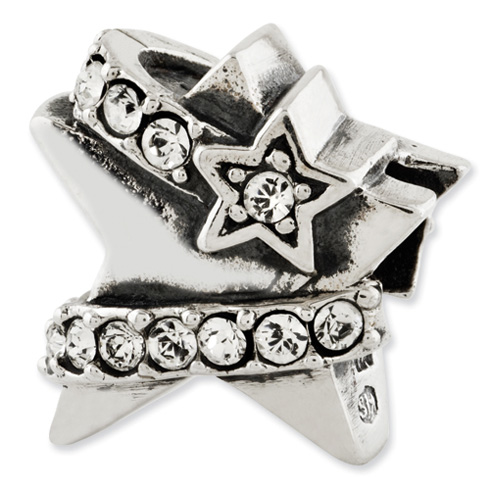 This wrapped star bead features white Swarovski elements. The bead is made of antiqued solid sterling silver. This bead fits all major modular bracelet brands. Imported.
