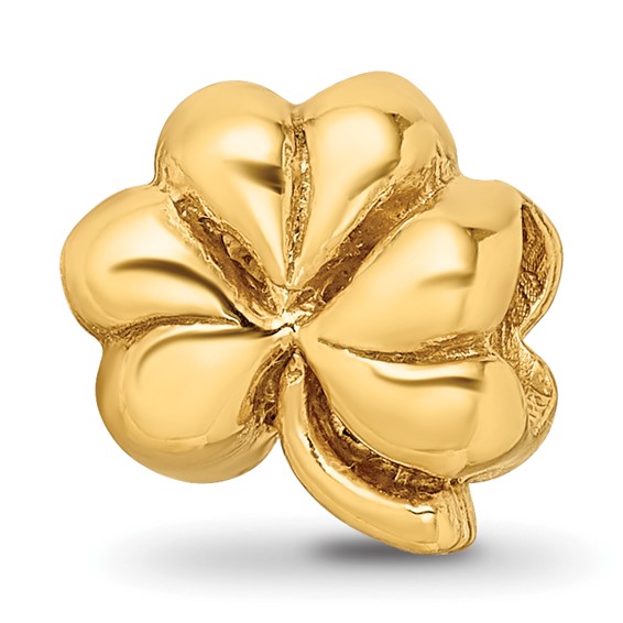 Clover bead is made of solid sterling silver with yellow gold plating. Plating is two microns. This bead fits all major modular bracelet brands. Imported.