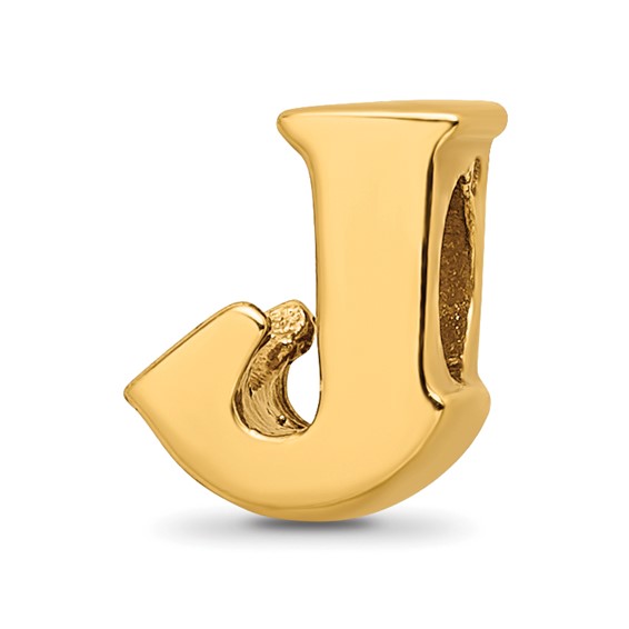 Letter J bead is made of solid sterling silver with yellow gold plating. Plating is two microns. This bead fits all major modular bracelet brands. Imported.