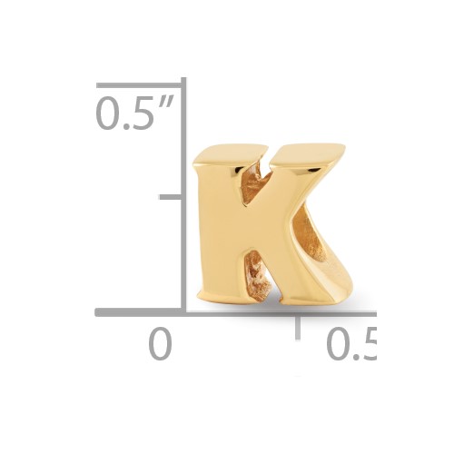 Letter K bead is made of solid sterling silver with yellow gold plating. Plating is two microns. This bead fits all major modular bracelet brands. Imported.