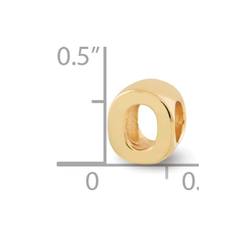 Letter O bead is made of solid sterling silver with yellow gold plating. Plating is two microns. This bead fits all major modular bracelet brands. Imported.