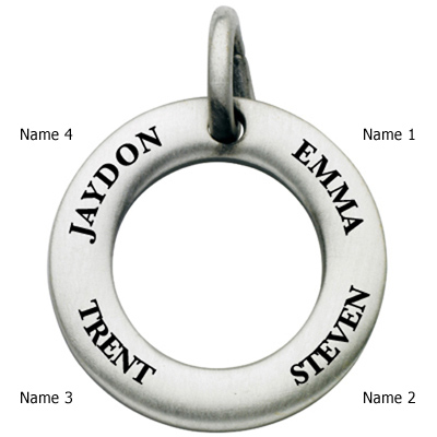 This brushed circle pendant is 22mm [the size of a nickel] and is made of antiqued sterling silver. It features personalization for 1-4 names. Chain not included. This pendant is part of the Ones We Love collection.