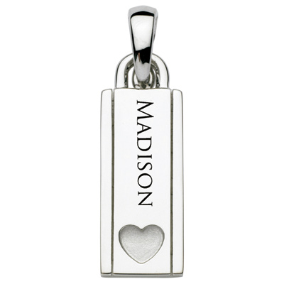 This polished dog tag pendant is 25mm x 9mm [the size of a quarter] It features personalization for one name. Each name is available in capital letters only. Chain not included. This pendant is part of the Ones We Love collection.