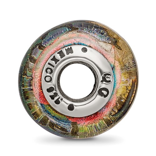 Cozumel orange dichroic glass bead is made of sterling silver. This bead fits all major modular bracelet brands. Imported.