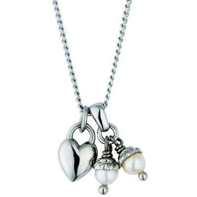 Necklace features a sterling silver puffed heart and two white 4mm cultured pearls. Necklace width: 1.2mm, length: 18in. This necklace is part of the Ones We Love collection.