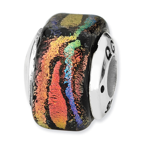 Square orange dichroic glass bead is made of sterling silver. This bead fits all major modular bracelet brands. Color range varies. Imported.