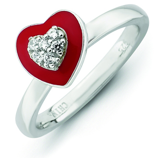 Sterling silver stackable ring has a red enamel heart and cubic zirconia accents. Metal weight: 3.46 grams. Available in whole finger sizes only, 5-10. Imported. Part of the Stackable Expressions collection.