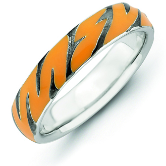 Sterling silver stackable ring has an orange tiger print enamel design. Metal weight: 3.13 grams. Available in whole finger sizes only, 5-10. Imported. Part of the Stackable Expressions collection.