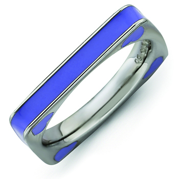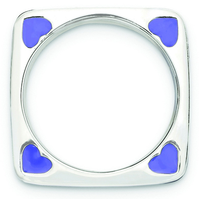 Sterling silver stackable ring has a square shape with purple enamel hearts on the sides. Width: 3.25mm. Metal weight: 4.78 grams. Available in whole finger sizes only, 5-10. Imported. Part of the Stackable Expressions collection.