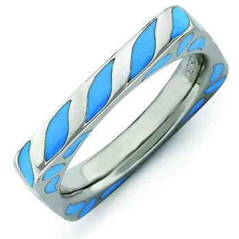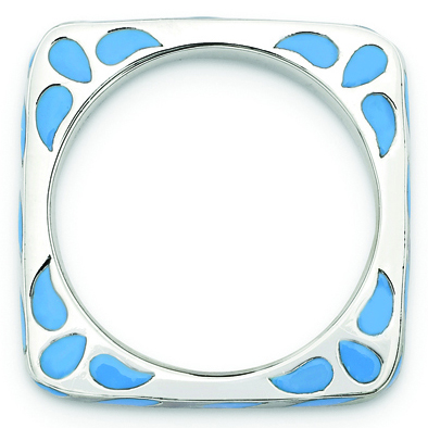 Polished sterling silver stackable ring has a square shape with blue enamel pattern. Ring width: 3.25mm. Metal weight: 5.28 grams. Available in whole finger sizes only, 5-10. Imported. Part of the Stackable Expressions collection.