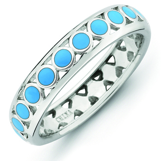 Stackable ring has blue enamel circles and is made of polished sterling silver. Ring width: 4.5mm. Metal weight: 2.68 grams. Available in whole finger sizes only, 5-10. Imported. Part of the Stackable Expressions collection.