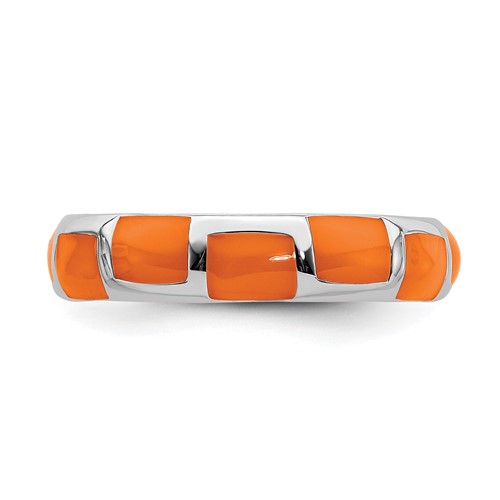 Sterling silver stackable ring has staggered orange enamel blocks all the way around the ring. Metal weight: 2.68 grams. Available in whole finger sizes only, 5-10. Imported. Part of the Stackable Expressions collection.