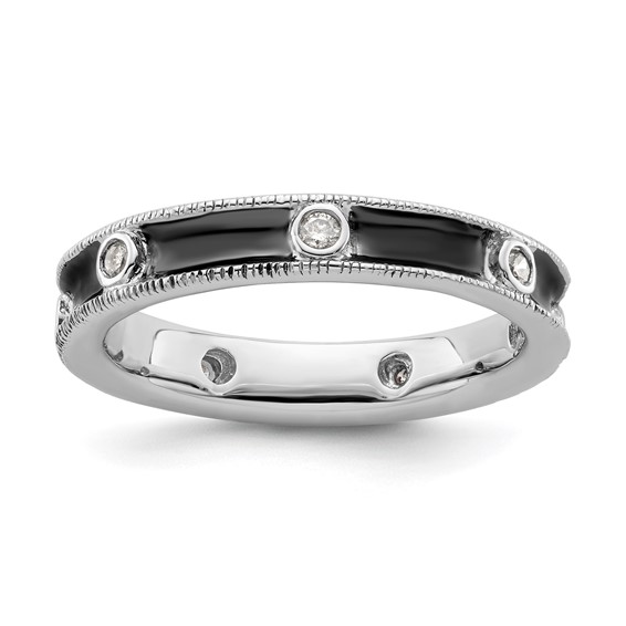 Polished sterling silver. Approximate diamond total weight: 0.16 carats. Ring width: 3.50mm. Metal weight: 3.56 grams. Available in whole finger sizes only, 5-10. Imported. Part of the Stackable Expressions collection.
