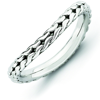 Stackable wave ring has a woven texture and is made of sterling silver. Width: 2.25mm. Metal weight: 2.9 grams. Available in whole finger sizes only, 5-10. Imported. Part of the Stackable Expressions collection.