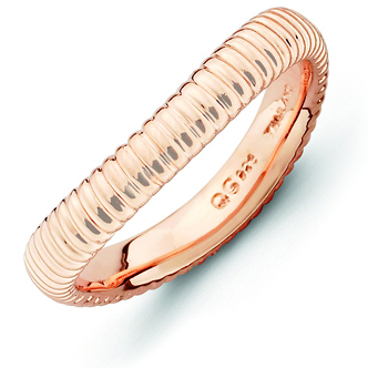 Pink gold-plated sterling silver wave shaped ring has a ribbed texture. Ring width: 3.25mm. Metal weight: 3.53 grams. Available in whole finger sizes only, 5-10. Imported. Part of the Stackable Expressions collection.