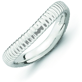 Polished sterling silver wave shaped ring has a ribbed texture. Ring width: 3.25mm. Metal weight: 3.53 grams. Available in whole finger sizes only, 5-10. Imported. Part of the Stackable Expressions collection.
