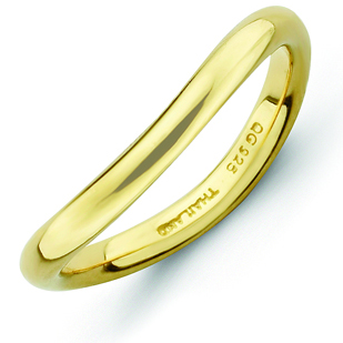 This stackable ring has a wave shape and is made of gold-plated sterling silver. Ring width: 2.25mm. Part of the Stackable Expressions collection. Metal weight: 2.5 grams. Available in whole finger sizes only, 5-10. Import.