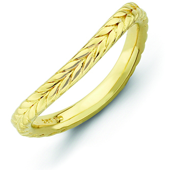 Stackable wave ring with wheat texture is made of polished yellow gold-plated sterling silver. Width: 2.25mm. Metal weight: 2.75 grams. Available in whole finger sizes only, 5-10. Imported. Part of the Stackable Expressions collection.