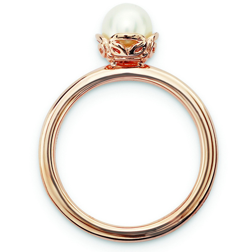Freshwater cultured pearl stackable ring is made of sterling silver with 18kt rose gold plating. Freshwater cultured pearl diameter: 6 to 6.5mm. Ring width: 2.50mm. Metal weight: 3.7 grams. Available in whole finger sizes only, 5-10. Imported. Part of the Stackable Expressions collection.