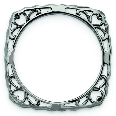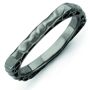 Stackable square ring has a distressed texture and is made of black-plated sterling silver. Part of the Stackable Expressions collection. Ring width: 2.25mm. Metal weight: 2.5 grams. Available in whole finger sizes only, 5-10. Import.