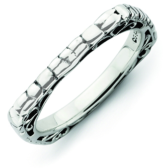 Antiqued sterling silver stackable square ring has a snakeskin texture. Ring width: 2.25mm. Metal weight: 3.2 grams. Imported. Part of the Stackable Expressions collection.