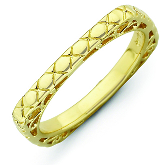 Stackable square ring has a quilted texture and is made of gold-plated sterling silver. Part of the Stackable Expressions collection. Ring width: 2.25mm. Metal weight: 2.9 grams. Available in whole finger sizes only, 5-10. Import.
