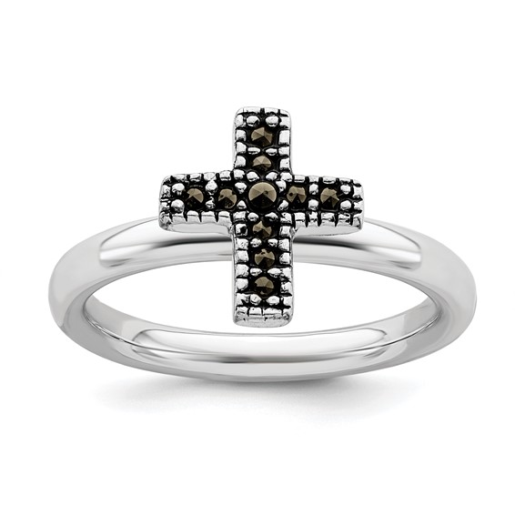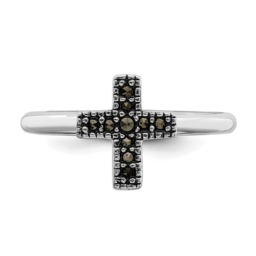 Marcasite cross ring in polished sterling silver. Metal weight: 2.7 grams. Available in whole finger sizes only, 5-10. Imported. Part of the Stackable Expressions collection.