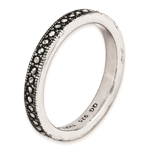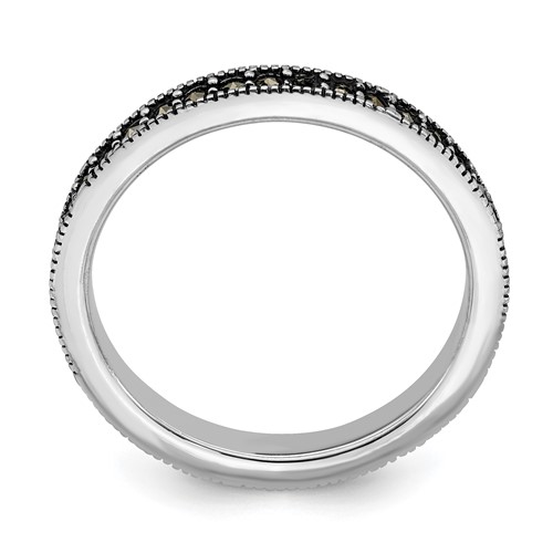 Marcasite stackable eternity ring is made of polished sterling silver. Metal weight: 3.5 grams. Available in whole finger sizes only, 5-10. Imported. Part of the Stackable Expressions collection.