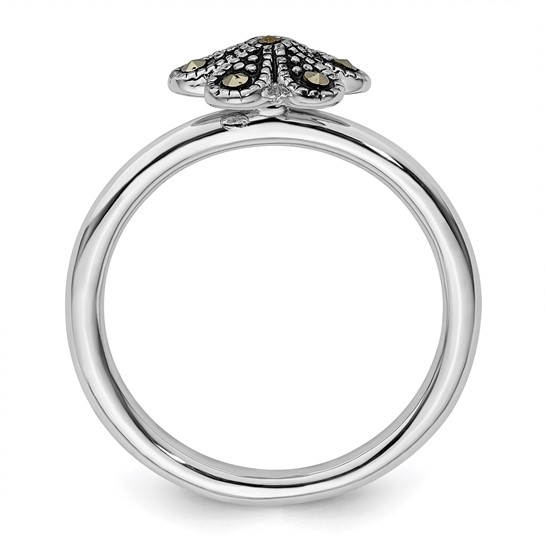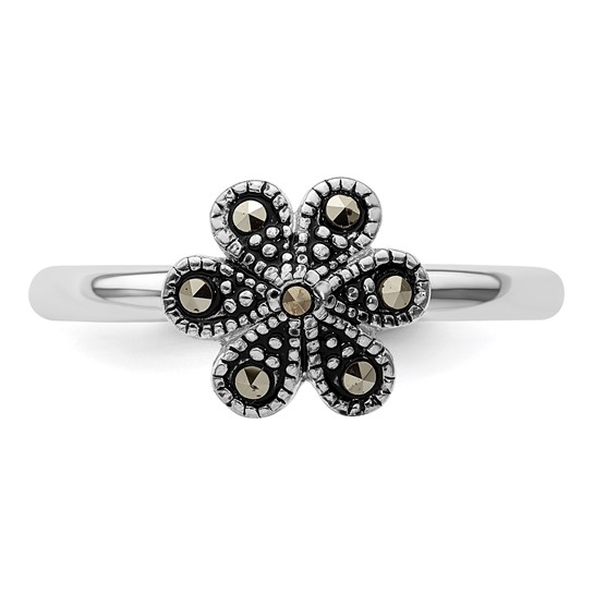 Stackable marcasite flower ring is made of polished sterling silver. Metal weight: 3.25 grams. Available in whole finger sizes only, 5-10. Imported. Part of the Stackable Expressions collection.