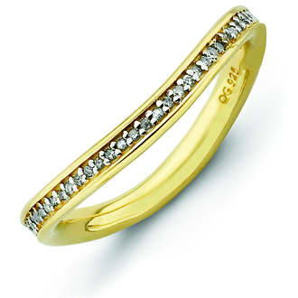 1/5 ct diamond wave ring is made of polished gold-plated sterling silver. Approximate diamond total weight: 0.234 carats. Metal weight: 2.7 grams. Available in whole finger sizes only, 5-10. Imported. Part of the Stackable Expressions collection. Available while supplies last.