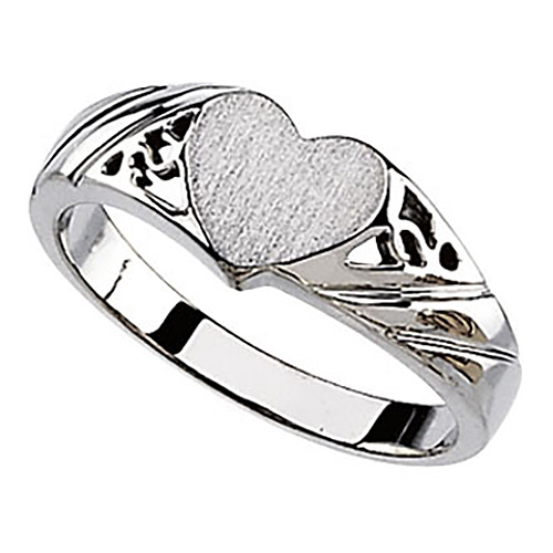 Eloquent and understated, this 14k white gold heart signet promise ring is a perfect expression of commitment. Available in sizes 4-14, whole and half sizes only. Stock size is 6; please allow 3-4 business days for sizing before this item ships. This item weights approximately 3.85 grams.