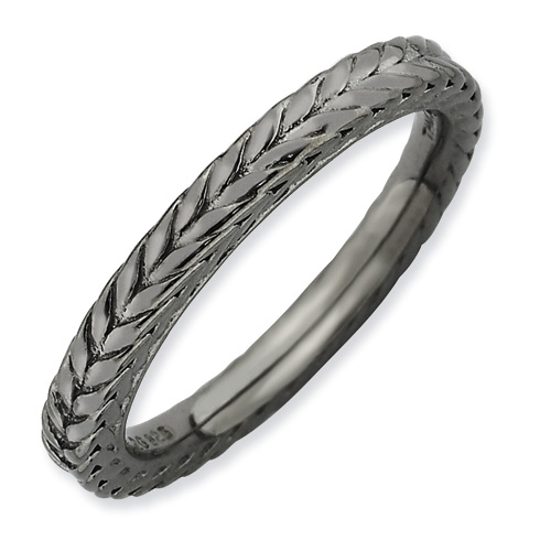 Stackable ring has a wheat texture and is made of black-plated sterling silver. Ring width: 2.5mm. Metal weight: 3.5 grams. Available in whole finger sizes only, 5-10. Imported. Part of the Stackable Expressions collection.