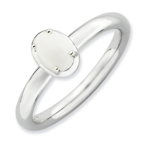 Stackable oval white agate ring is made of polished sterling silver. Ring width: 2.25mm. Metal weight: 3 grams. Available in whole finger sizes only, 5-10. Imported. Part of the Stackable Expressions collection.