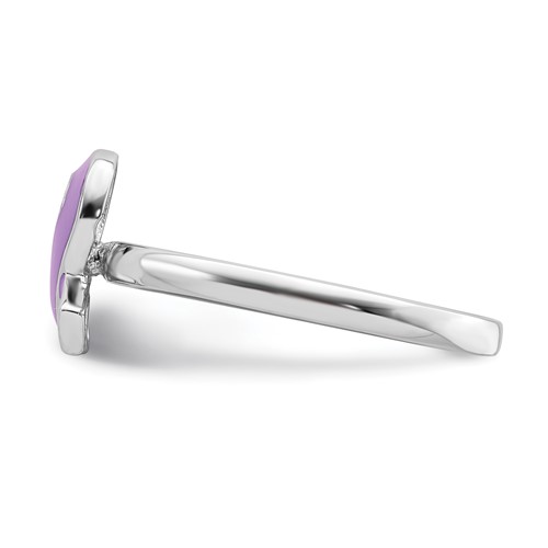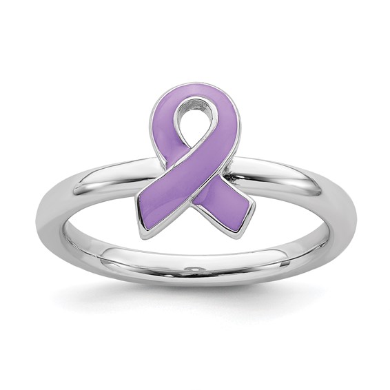 Stackable ring with enameled purple ribbon is made of polished sterling silver. A purple ribbon is worn to raise awareness for various causes, including Alzheimer's disease, childbirth and infant health. Metal weight: 3.17 grams. Available in whole finger sizes only, 5-10. Imported. Part of the Stackable Expressions collection.