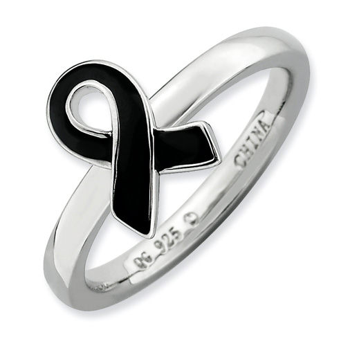 Sterling silver stackable ring features a black enamel ribbon. Ring width: 2.25mm. Metal weight: 3.17 grams. Available in whole finger sizes only, 5-10 while supplies last. Imported. Part of the Stackable Expressions collection.