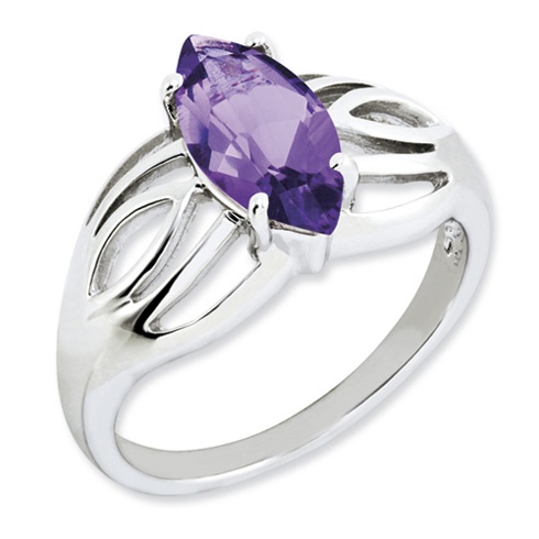 1.6 carat marquise cut amethyst ring is made of polished sterling silver. 12mm x 6mm marquise center stone. Available in whole sizes 5-10 only. Weight: 3 grams. Imported.