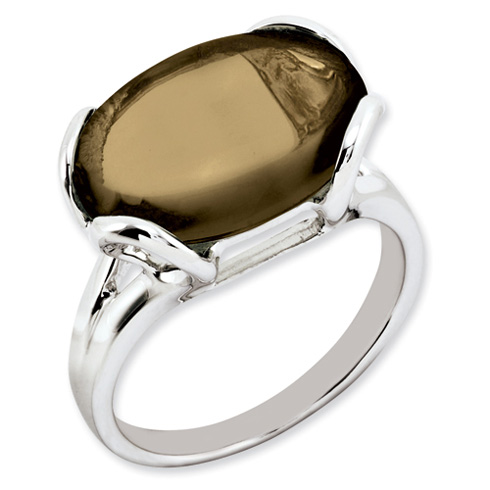 Polished sterling silver. Smokey Quartz ct weight: 8.5. 16mm x 12mm oval stone. Available in whole sizes 5-10 only. Imported.